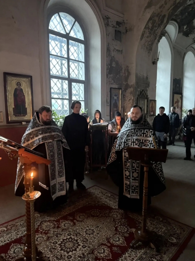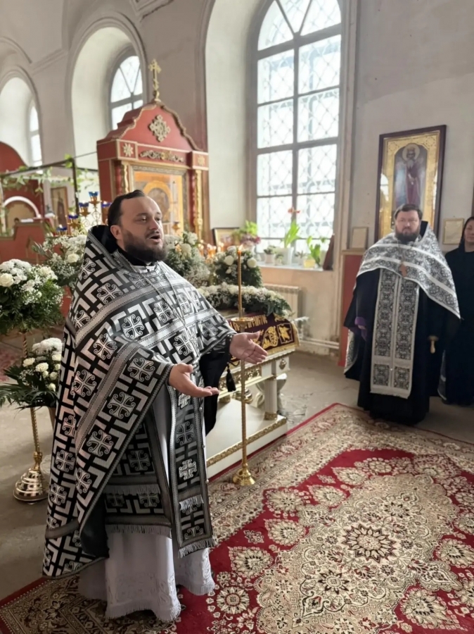 Богослужение совершил настоятель Спасского собора иеромонах Кирилл (Забавнов). Ему сослужили клирики храма иерей Михаил Климов и иерей Роман Лепихин.