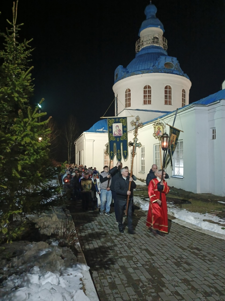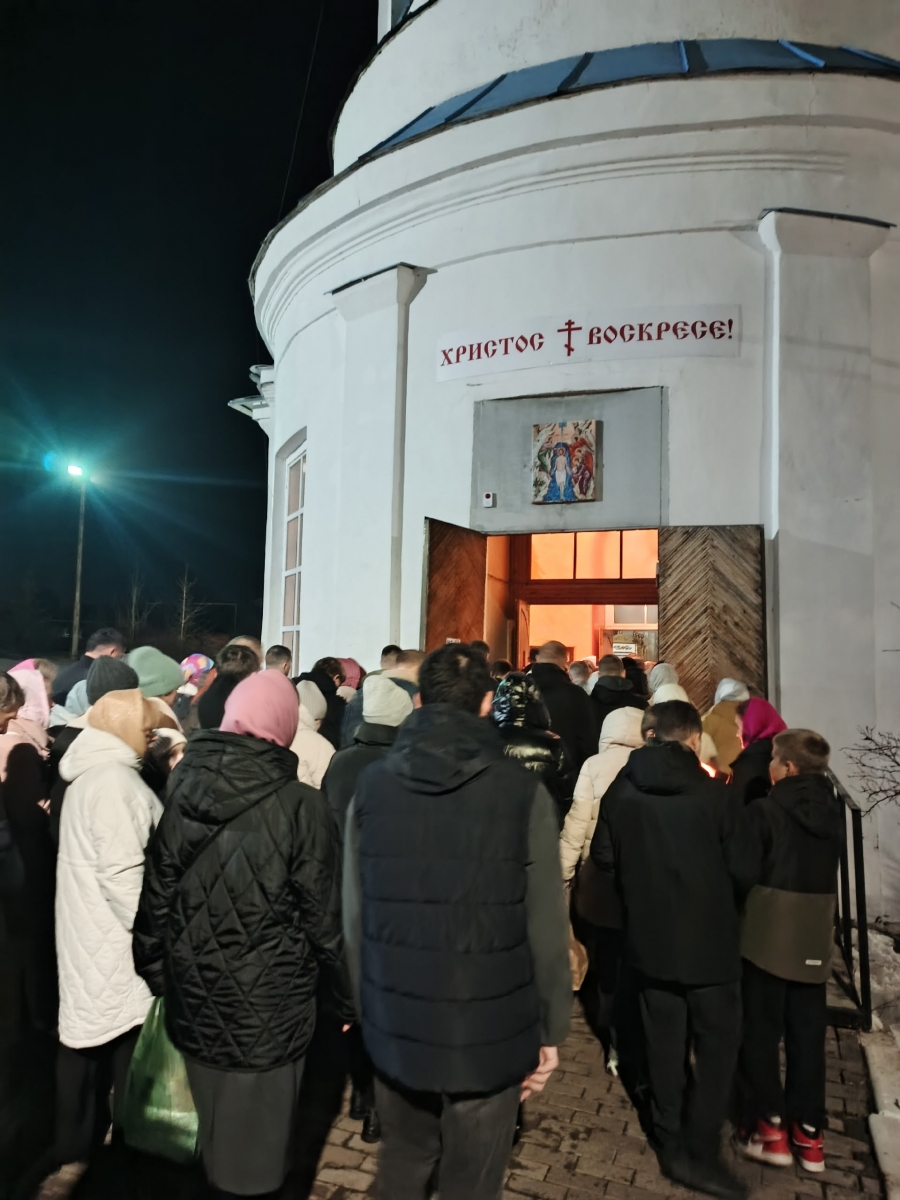 На полунощнице в алтарь была занесена Плащаница Господа и в начале Пасхальной утрени состоялся крестный ход вокруг храма, в завершении которого перед закрытыми дверями впервые прозвучало Пасхальное приветствие «Христос Воскресе!».