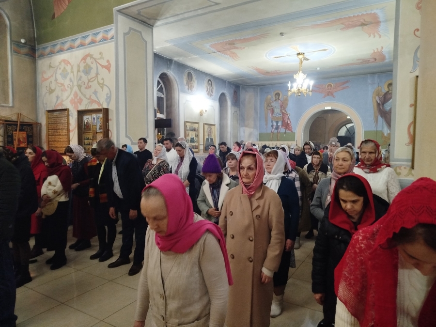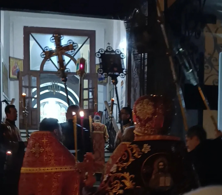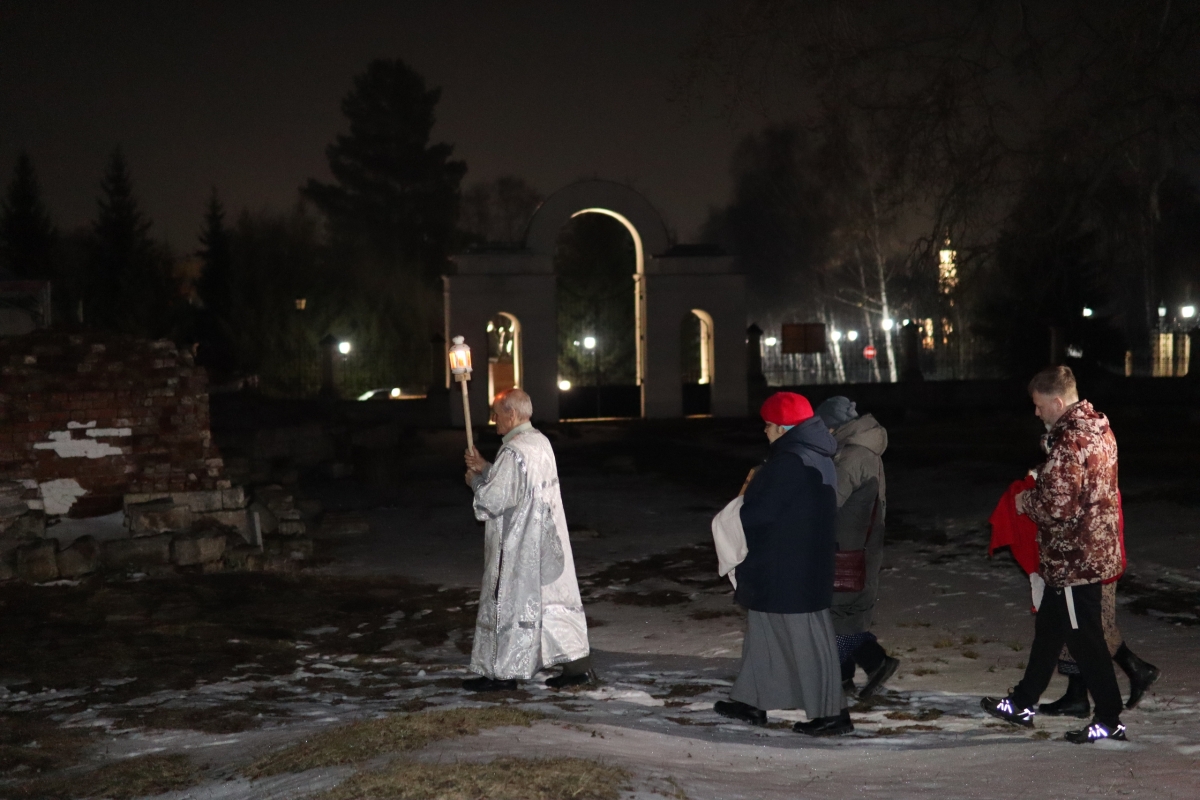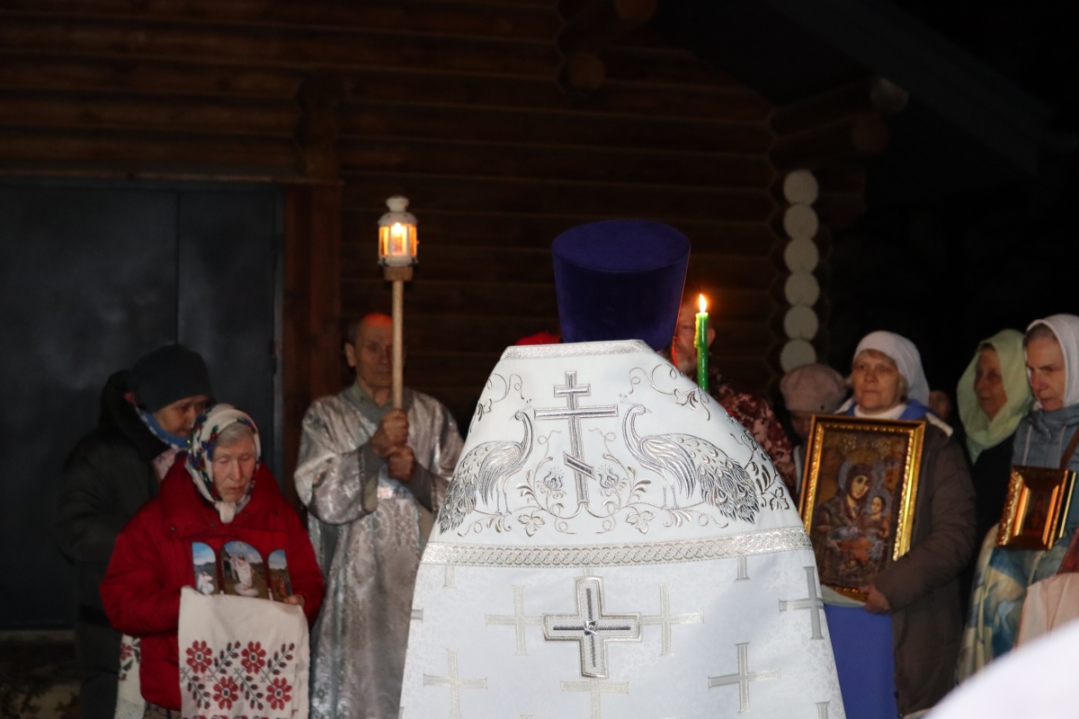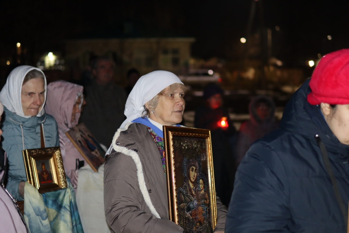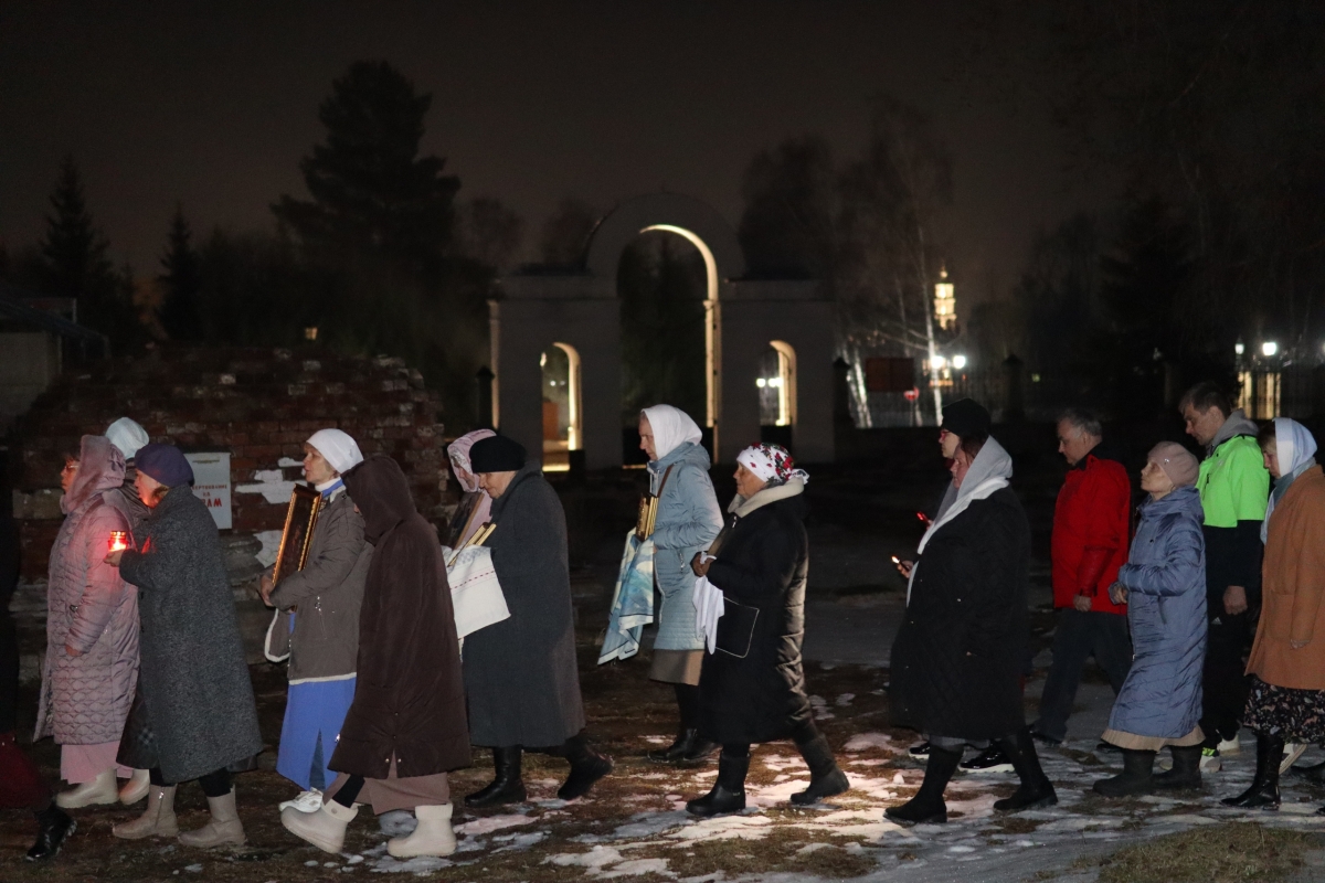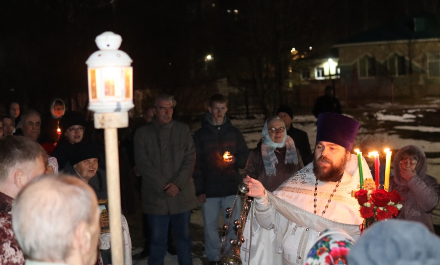 Под пение стихиры «Воскресение Твое, Христе Спасе» был совершен крестный ход по старинному Троицкому кладбищу и вокруг храма. Шествие, возглавляемое священником, знаменует собой путь навстречу Воскресшему Богу. Затем верующие с лампадками и свечами остановились у входа перед закрытыми церковными дверями, символизирующими вход в пещеру Гроба Господня. Отец Илия трижды пропели пасхальный тропарь, и зазвучали торжественные слова «Христос Воскресе!».