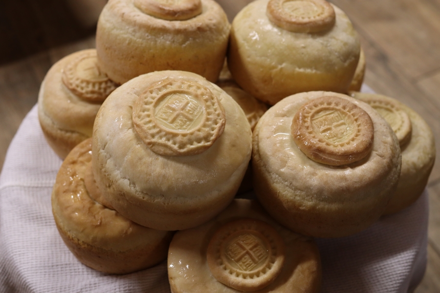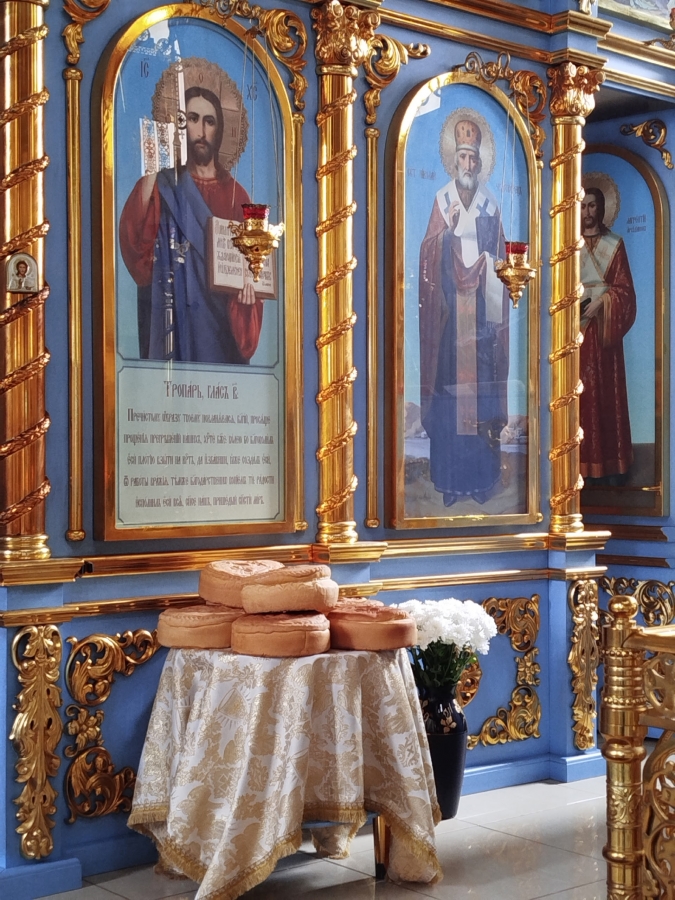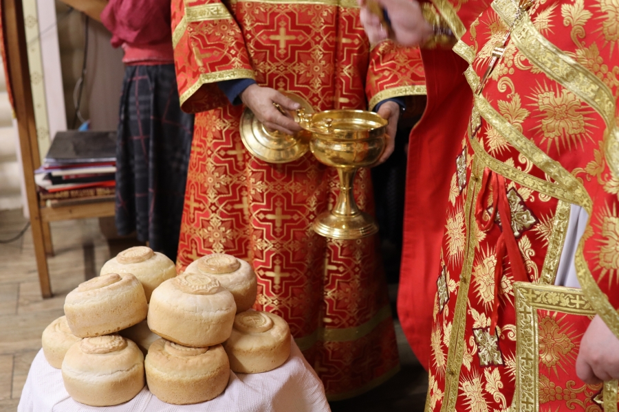 В конце службы были освящены Артос и пасхальная снедь, принесенная прихожанами храма.