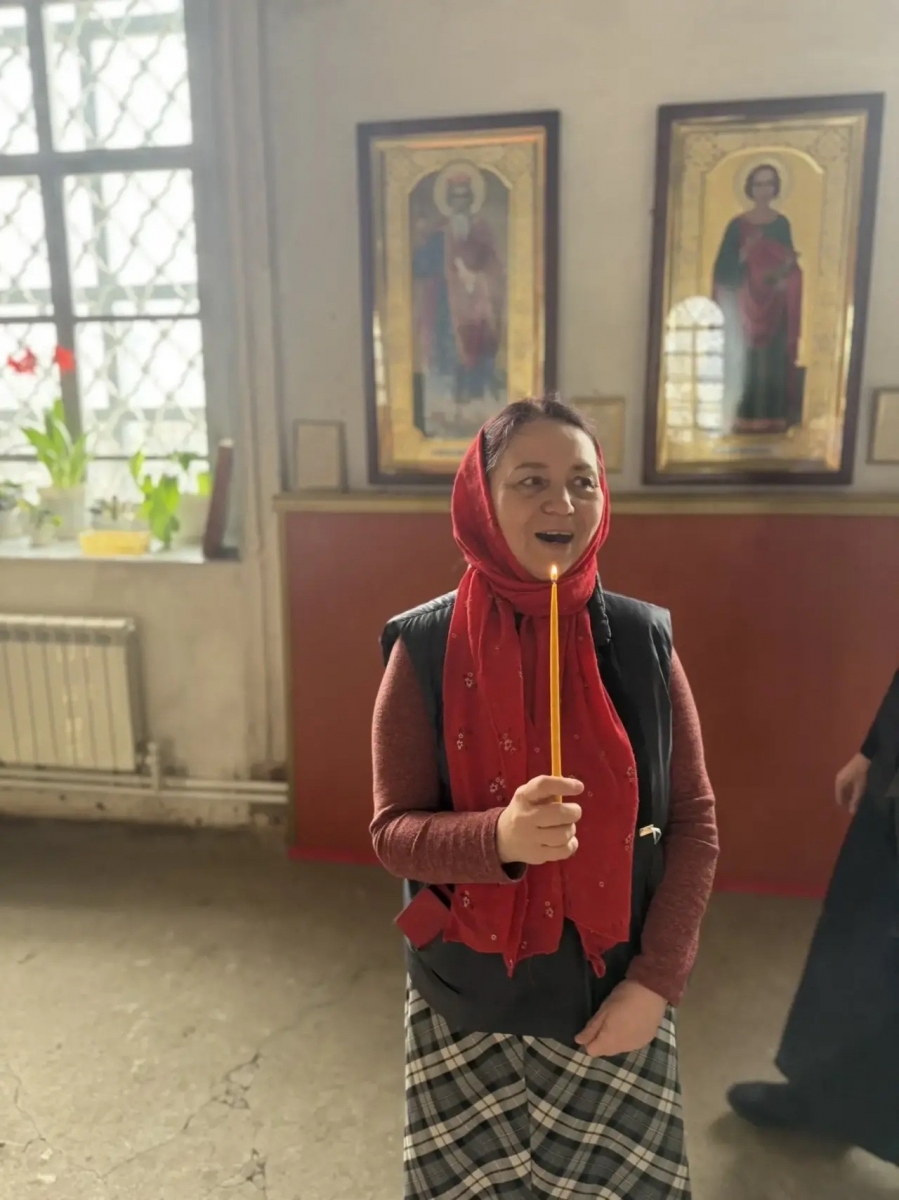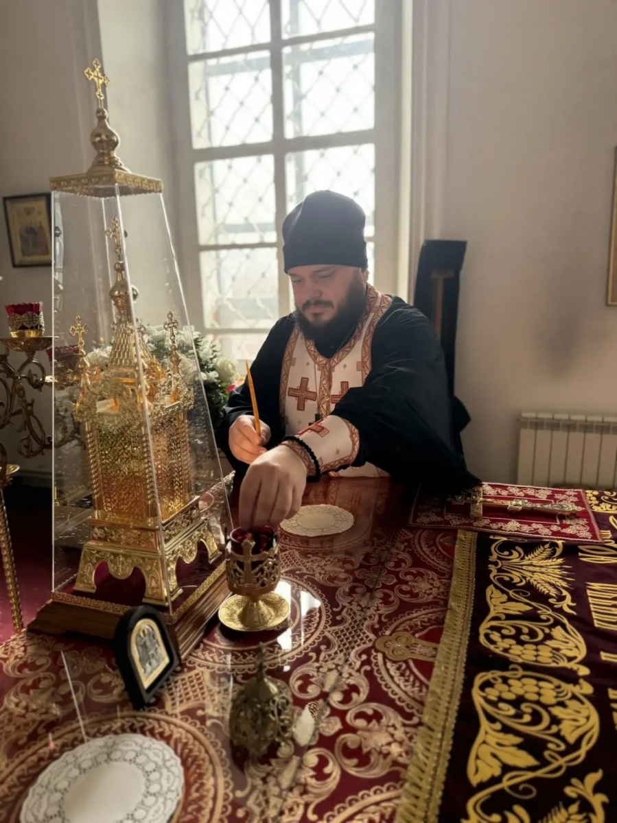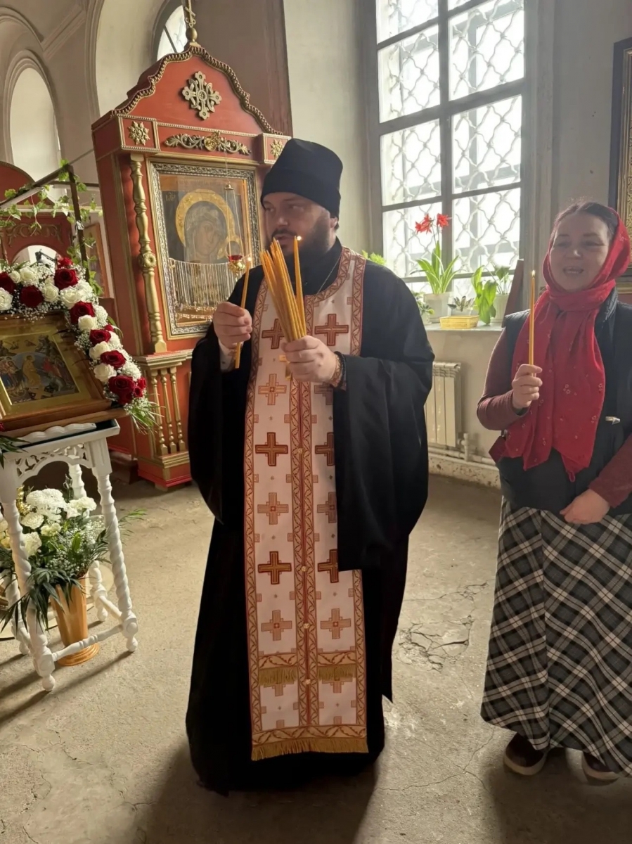 Отец Кирилл зажег в храме лампады и совершил пасхальные молитвы.