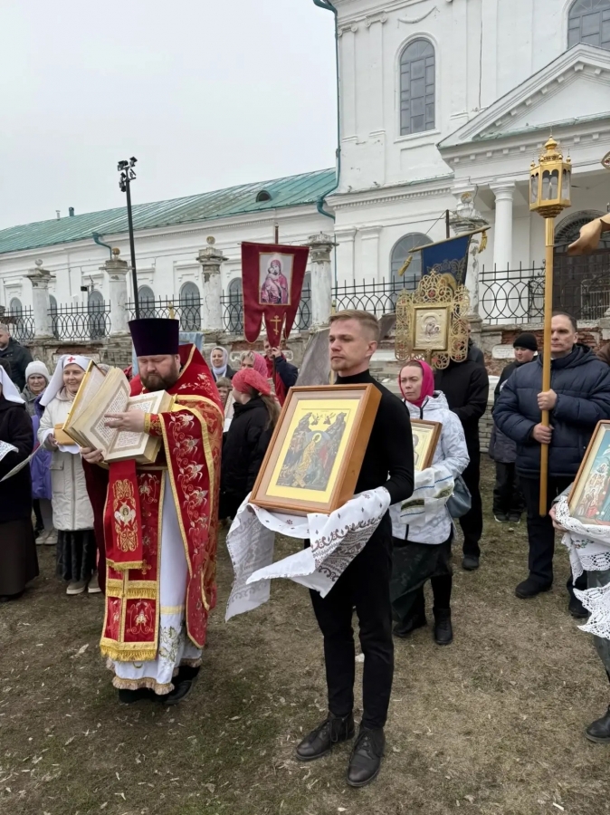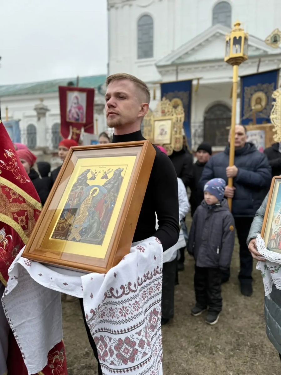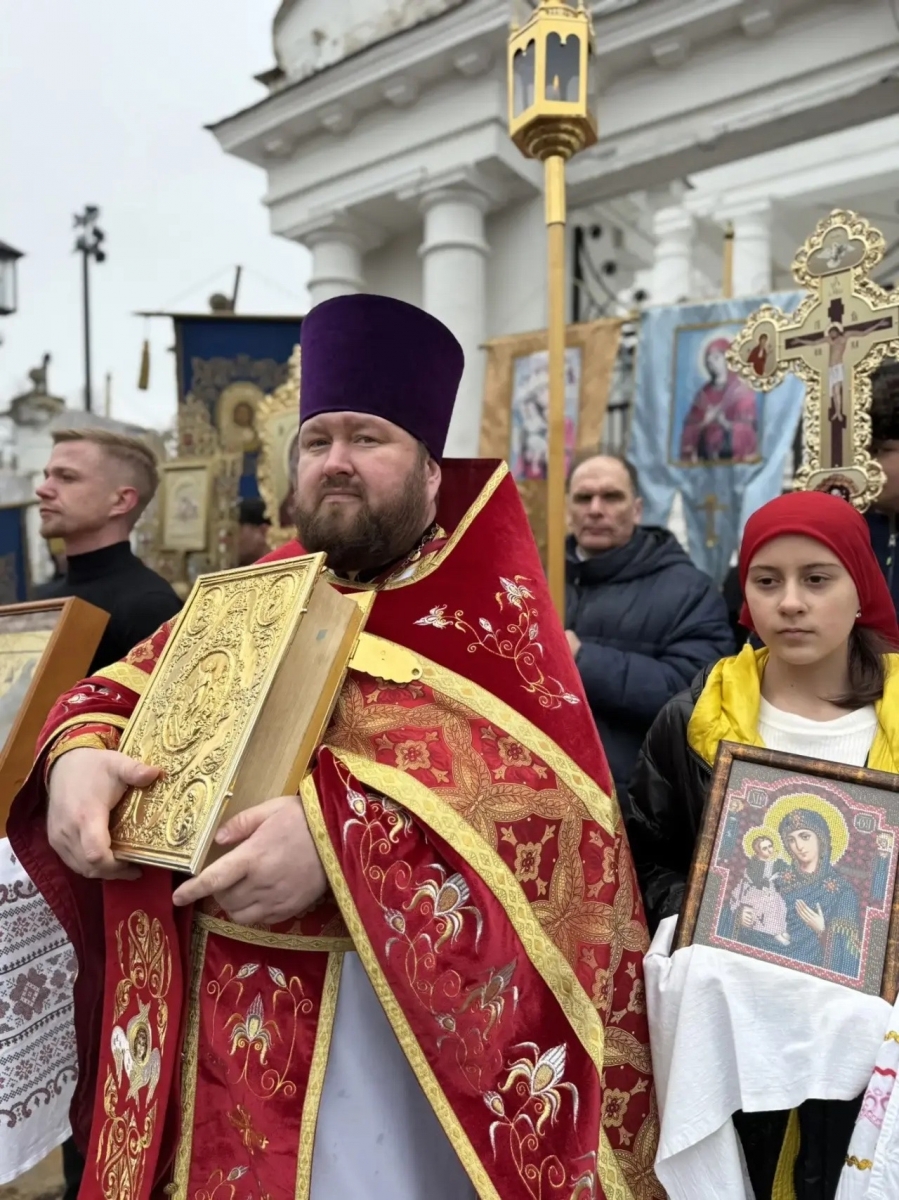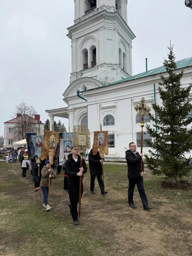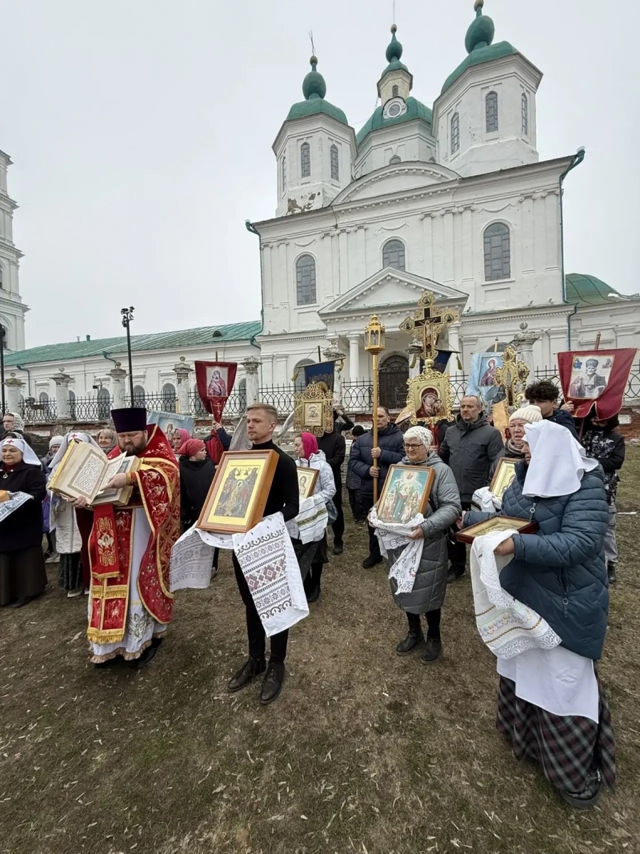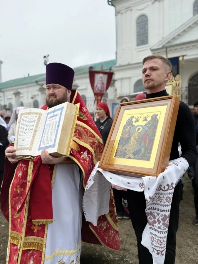 Затем духовенство и все участники богослужения прошли пасхальным крестным ходом вокруг собора.