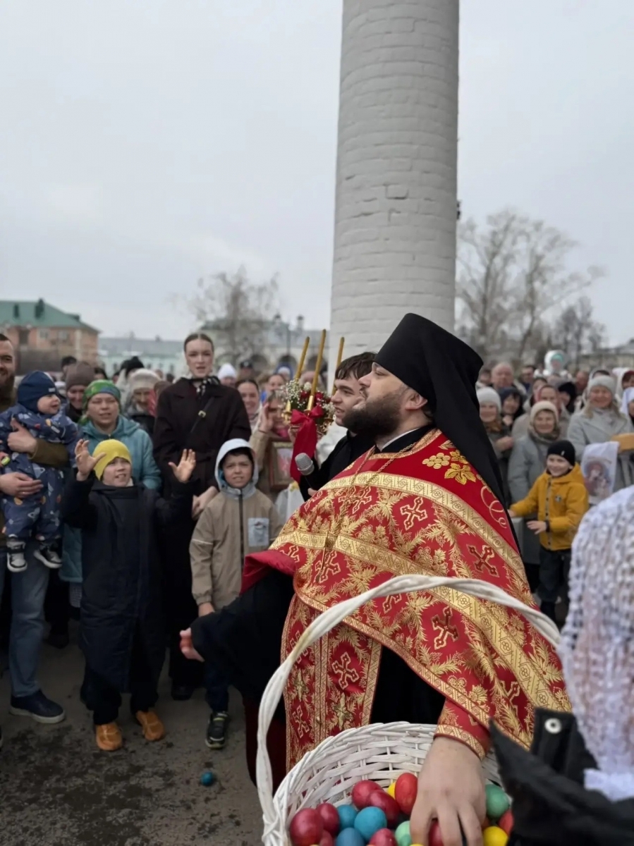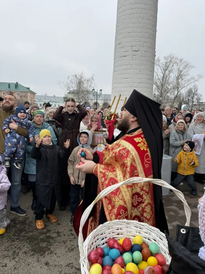 После крестного хода иеромонах Кирилл раздал прихожанам более 200 пасхальных яиц. Более 70 куличей – помощь нуждающимся, были розданы нуждающимся прихожанам.