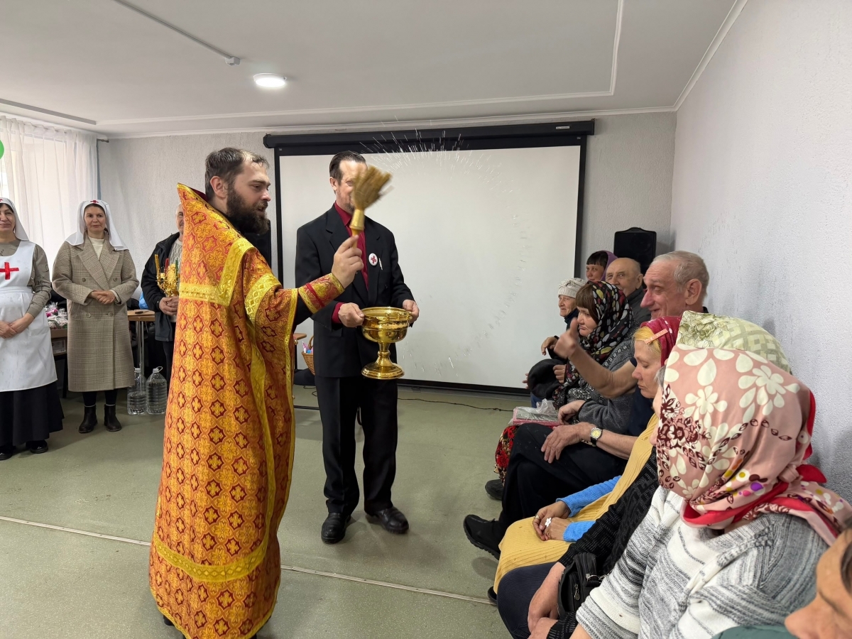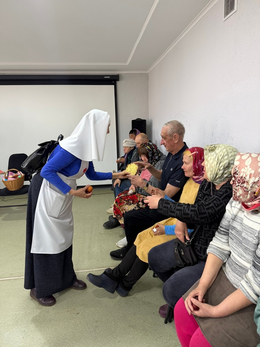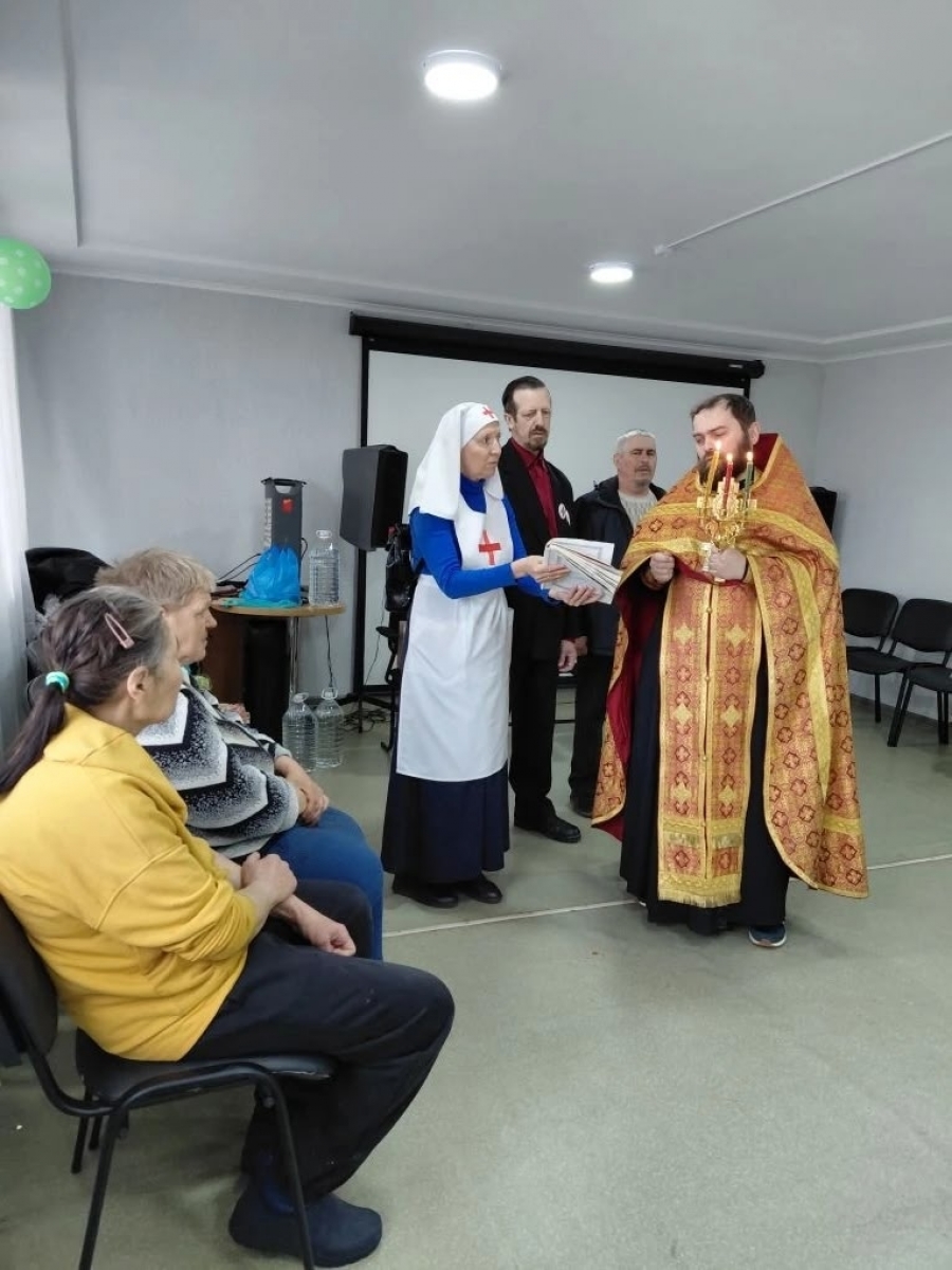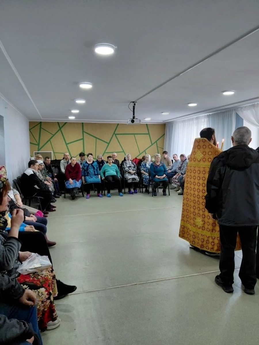 13 апреля 2026 года, в Светлый понедельник Пасхального Торжества, настоятель храма Воздвижения Креста Господня села Лекарево, помощник благочинного по работе с медицинскими учреждениями иерей Даниил Кривов совместно с братьями милосердия Алексием и Владимиром, сестрами милосердия Верой, Наталией и Ларисой Елабужского Свято - Елисаветинского общества милосердия посетили Елабужский Дом - интернат, предназначенный для граждан, имеющих психические расстройства, чтобы поздравить проживающих насельников со Светлыми Пасхальными днями и вручить праздничные угощения.