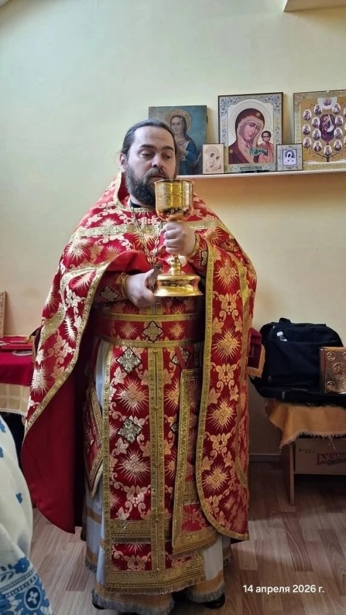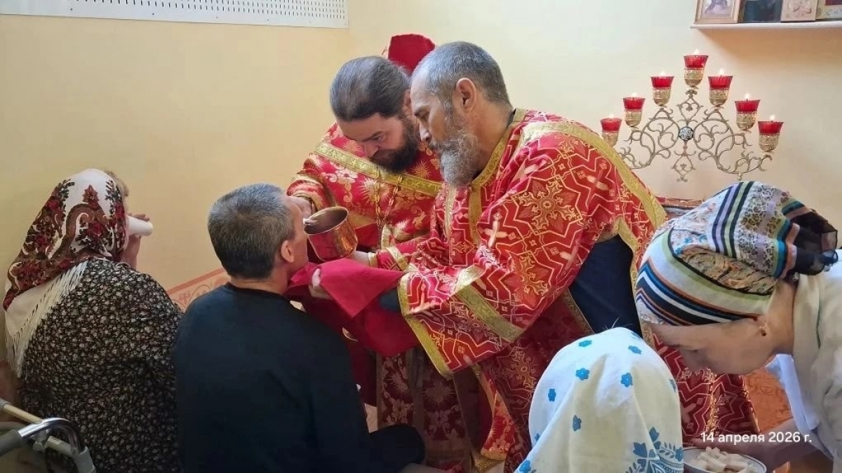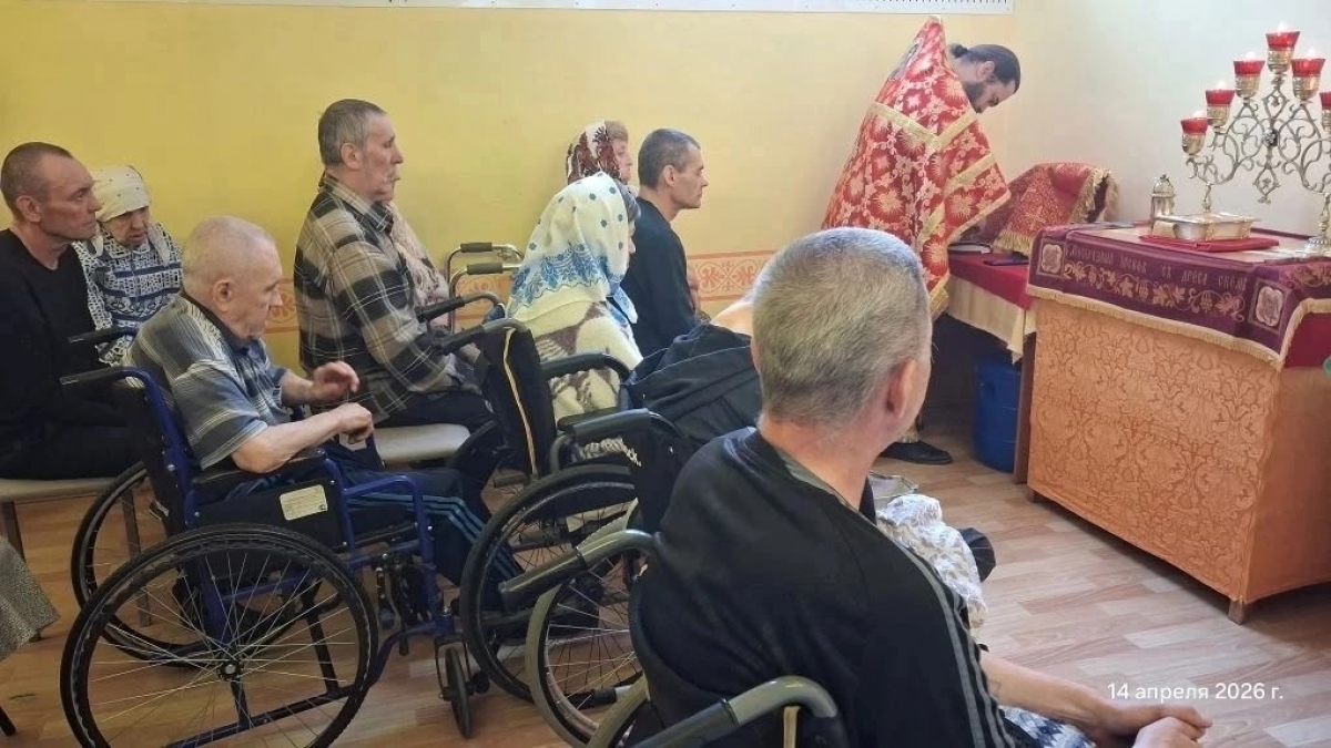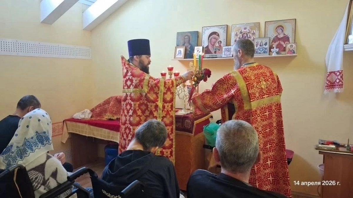 14 апреля 2026 года, в среду Светлой седмицы, в молельной комнате в честь святителя Тихона Задонского Елабужского Дома - интерната для престарелых и инвалидов состоялась Пасхальная Божественная Литургия, которую совершил настоятель прихода Святой Троицы города Елабуги иерей Илия Кривов.