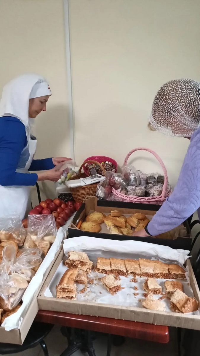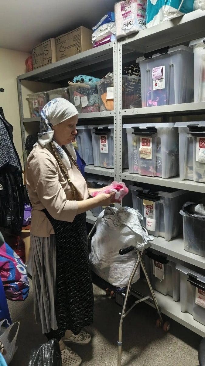 На гуманитарном складе сестричества нуждающиеся получили предметы первой необходимости (подгузники, пелёнки) и вещи по сезону. По опыту многих лет в сестричестве отмечают: средства по уходу за тяжело болящими подопечными (одноразовые пеленки, подгузники, влажные салфетки и т.д.) всегда пользуются большим спросом, и общество милосердия с благодарностью принимает их в дар для последующей раздачи.