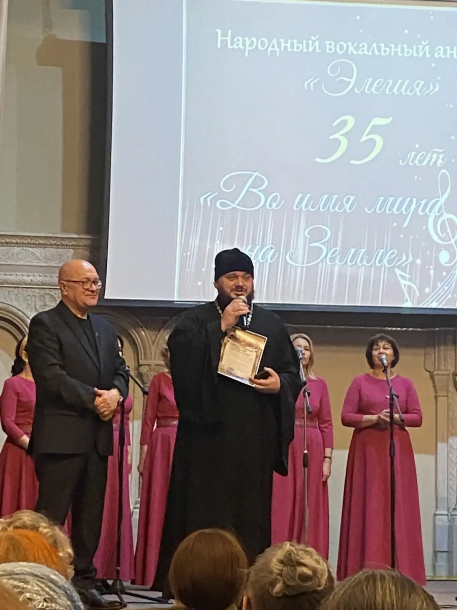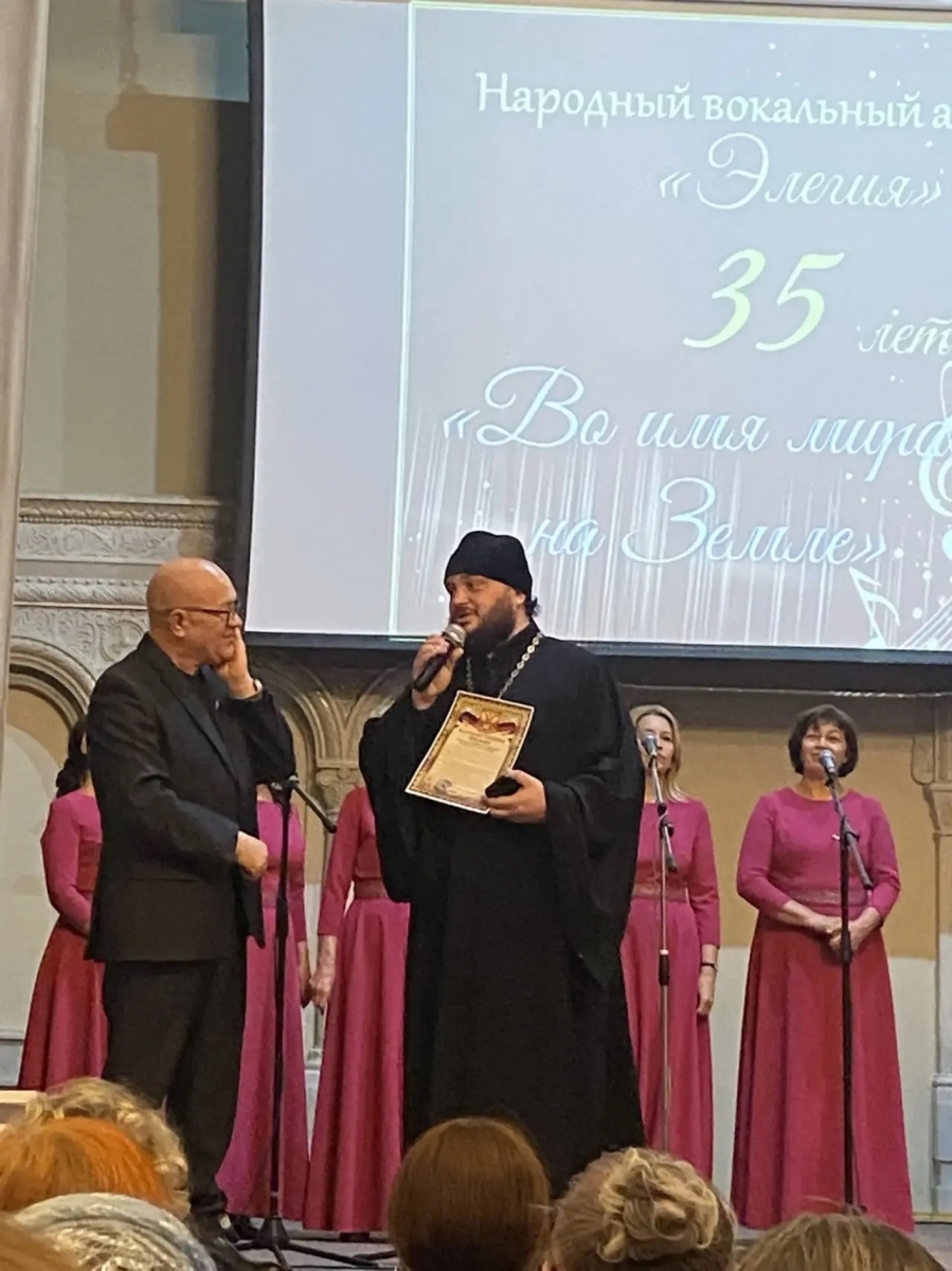 С приветственным словом выступил благочинный Елабужского церковного округа, настоятель Спасского собора иеромонах Кирилл (Забавнов). От лица епископа Набережночелнинского и Елабужского Гавриила отец Кирилл поздравил коллектив «Элегии» с круглой датой. Отец Кирилл также отметил, что свой день рождения певцы посвятили доброму делу - сбору средств на нужды СВО.