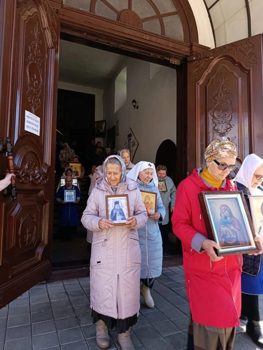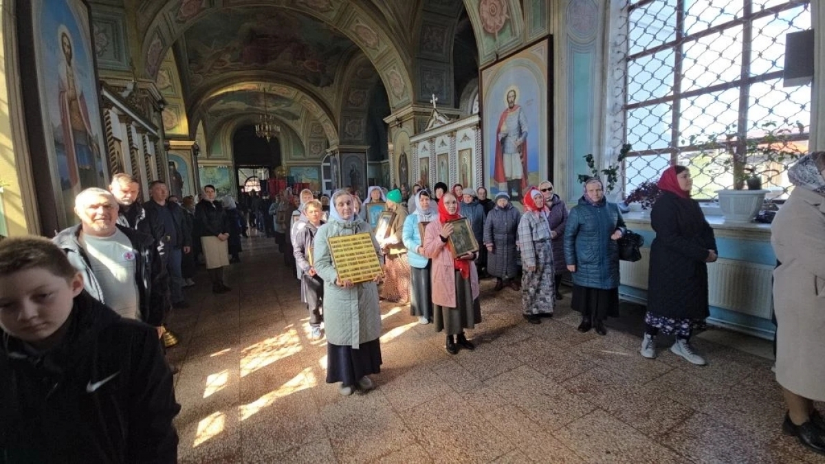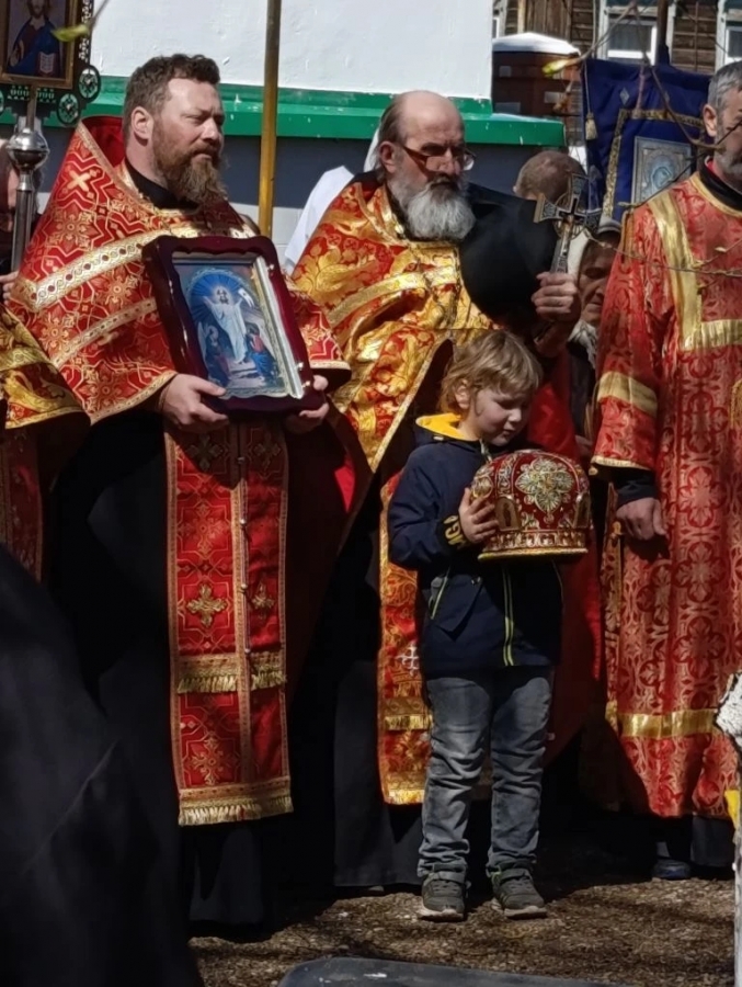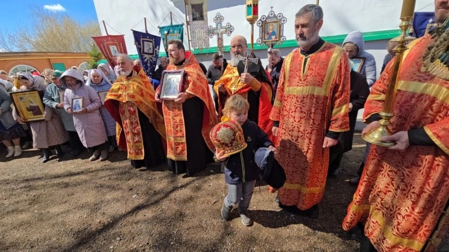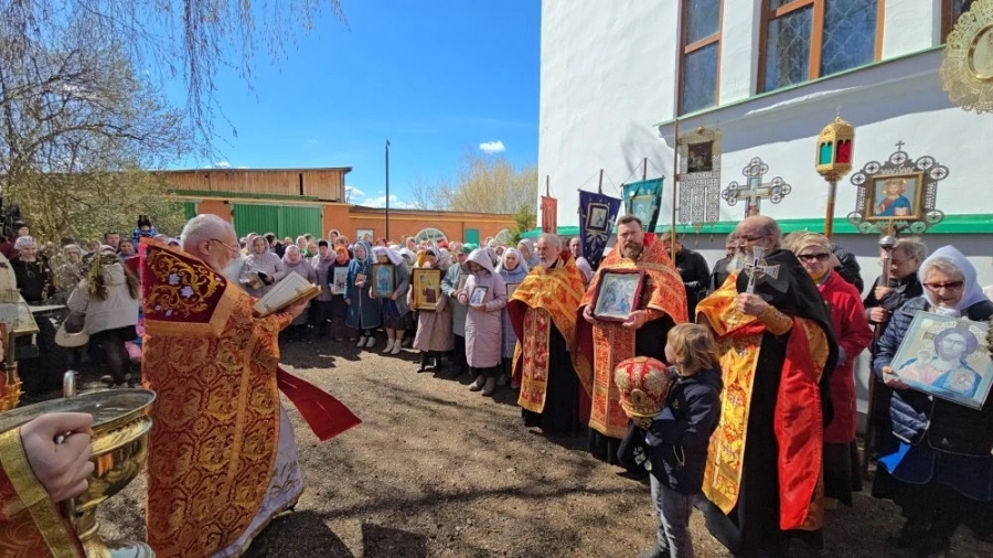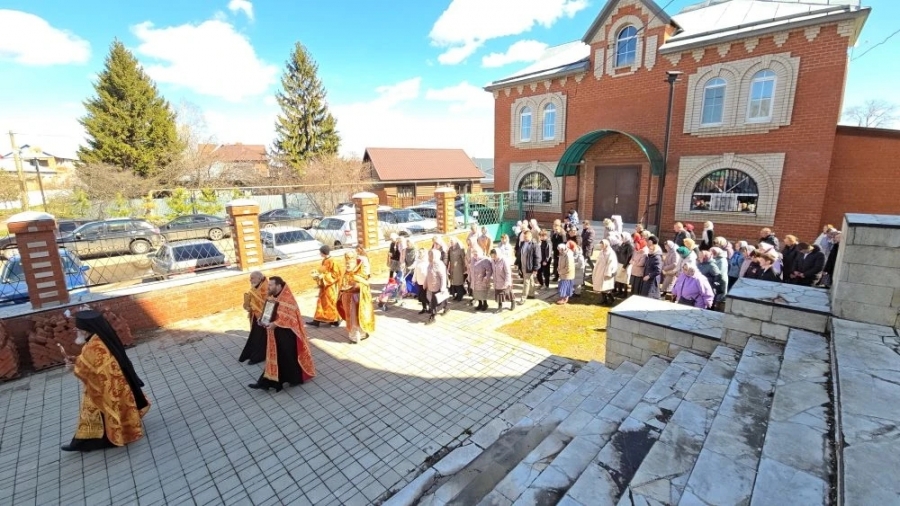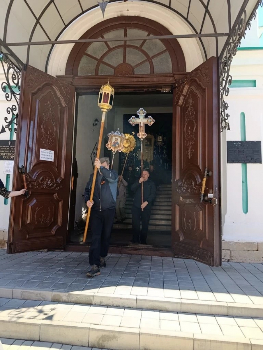По окончании Литургии священнослужители и прихожане прошли крестным ходом вокруг собора,