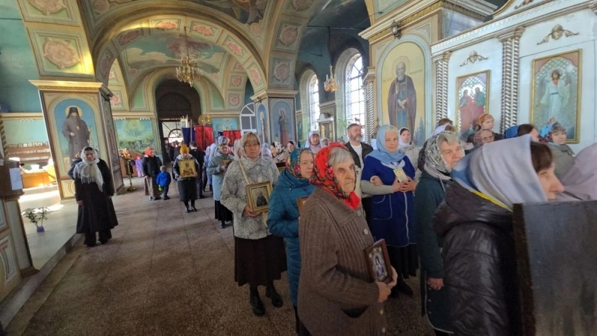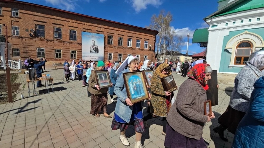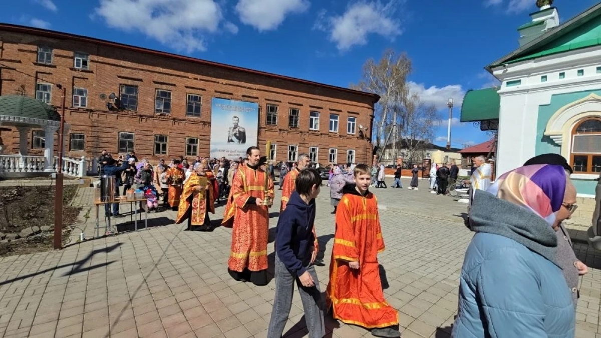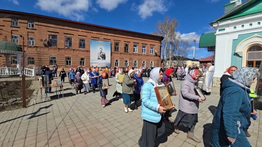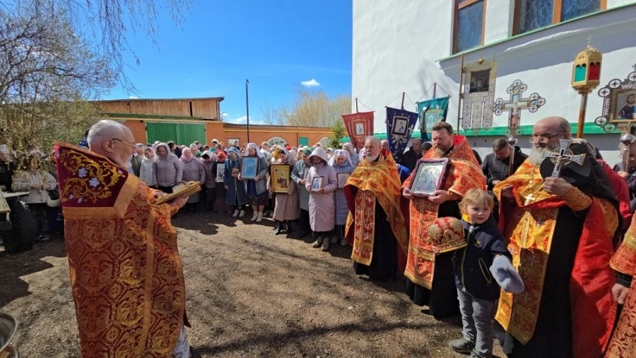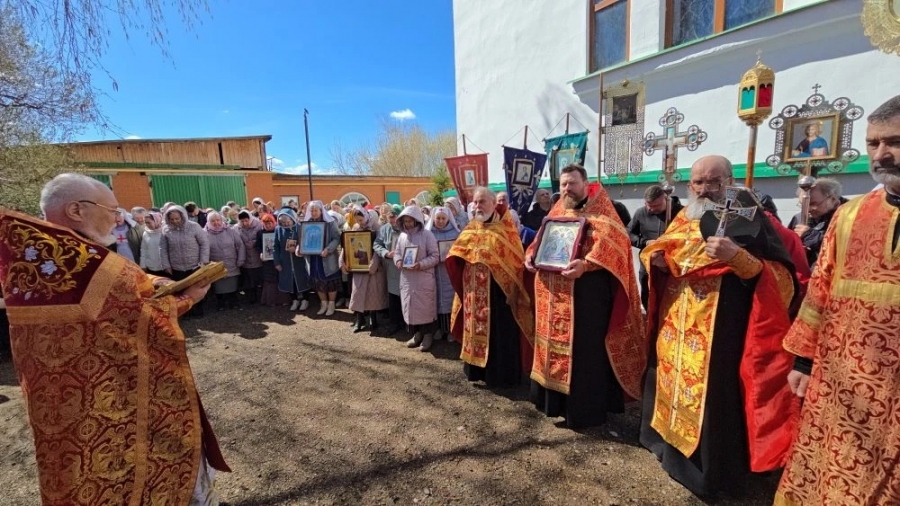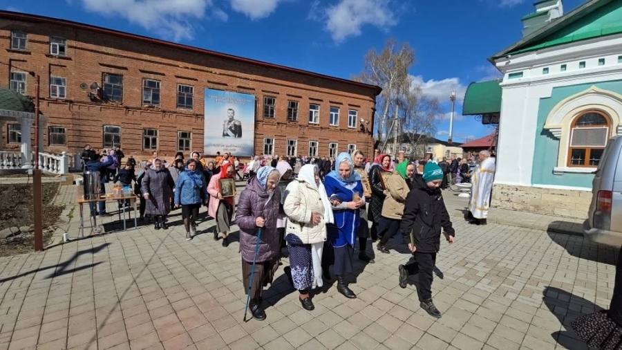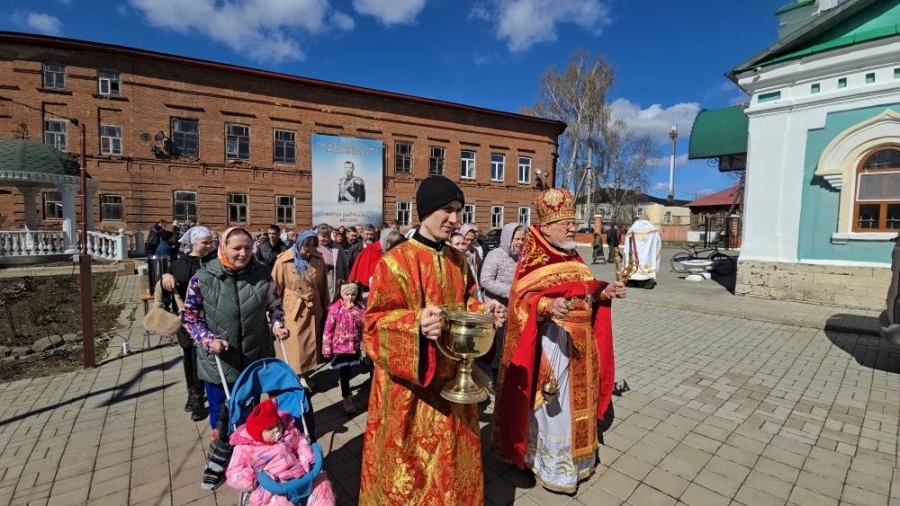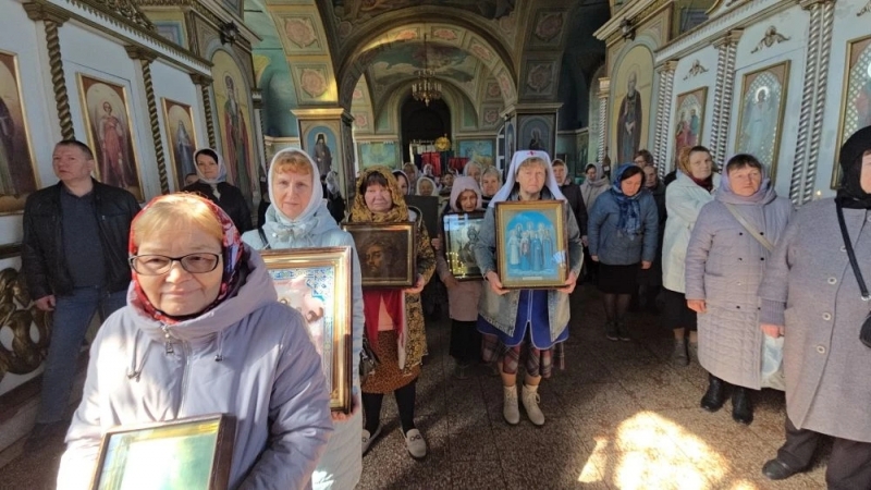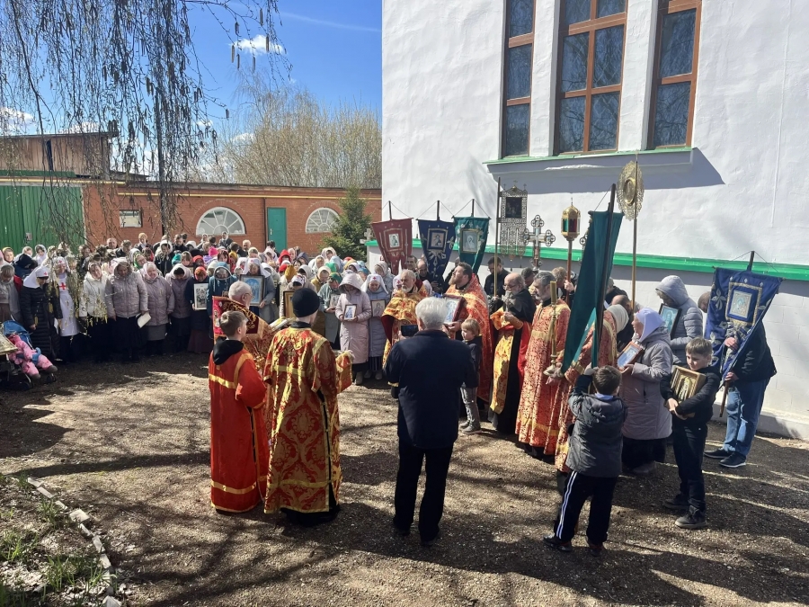 По окончании Литургии священнослужители и прихожане прошли крестным ходом вокруг собора,