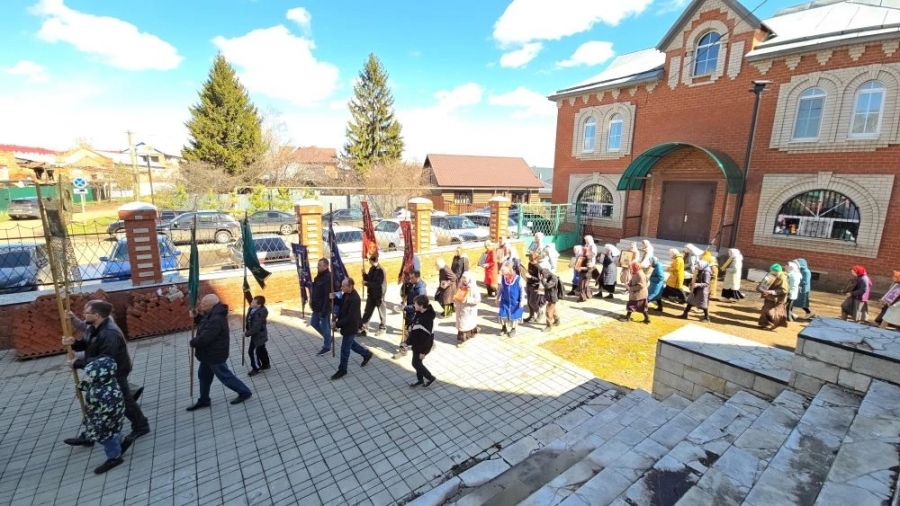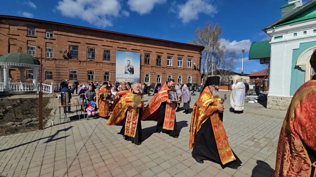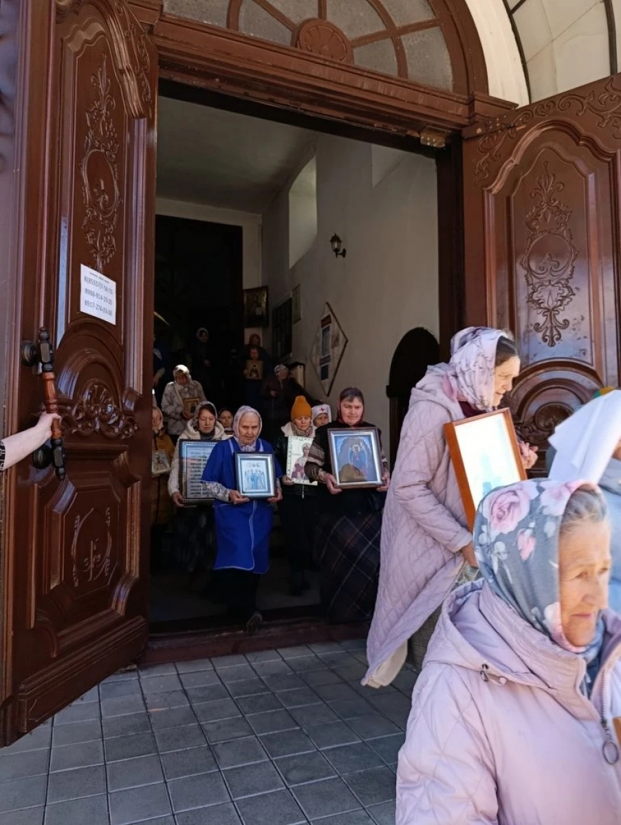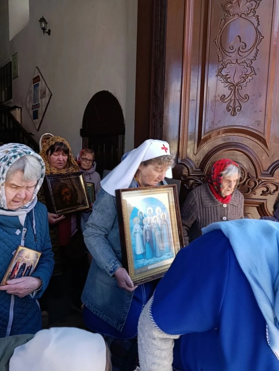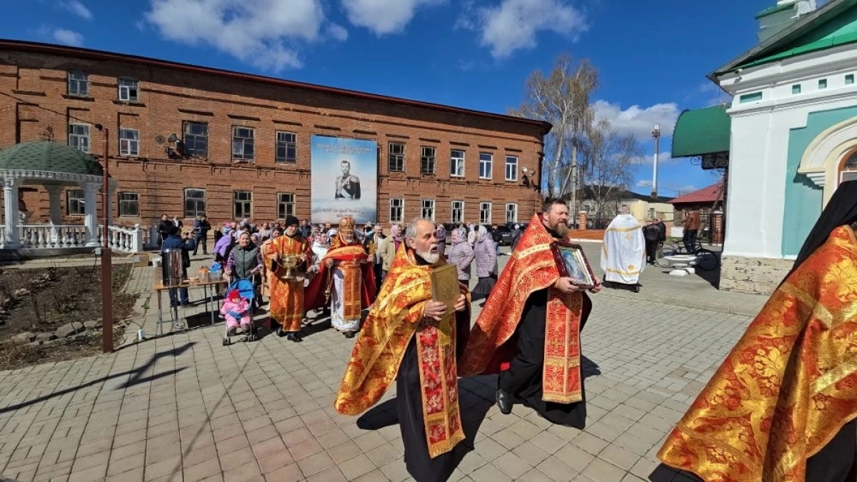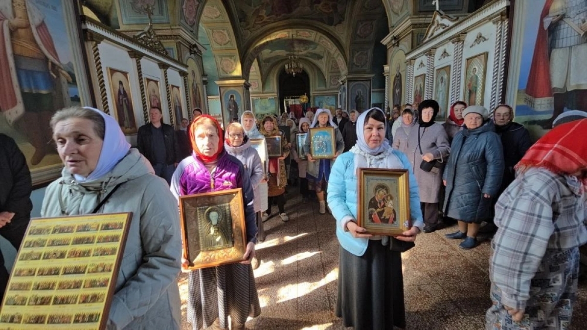 По окончании Литургии священнослужители и прихожане прошли крестным ходом вокруг собора,