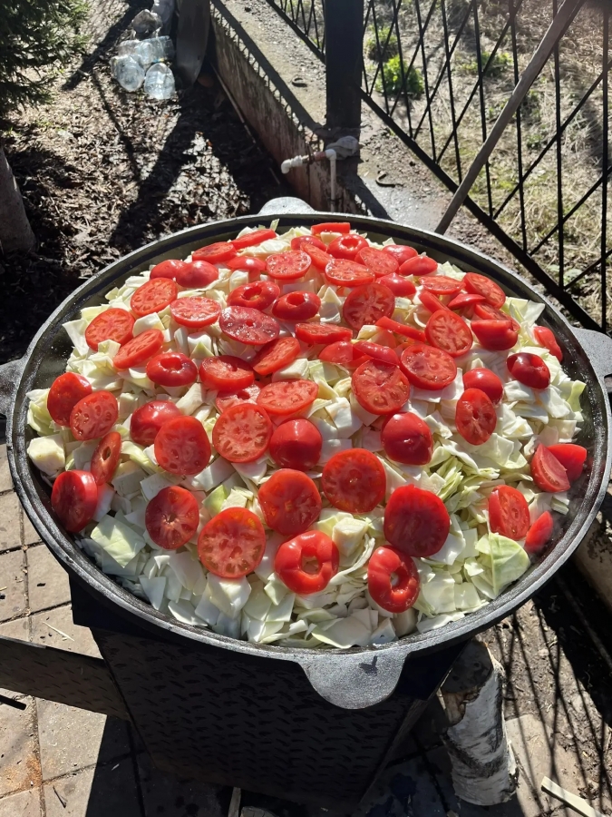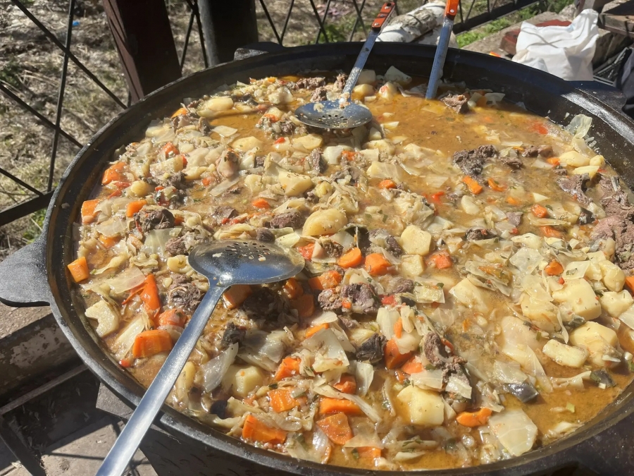 Рагу с овощами и мясом в казане, были приготовлены старанием прихожан – Романа, Ивана и Валерия.